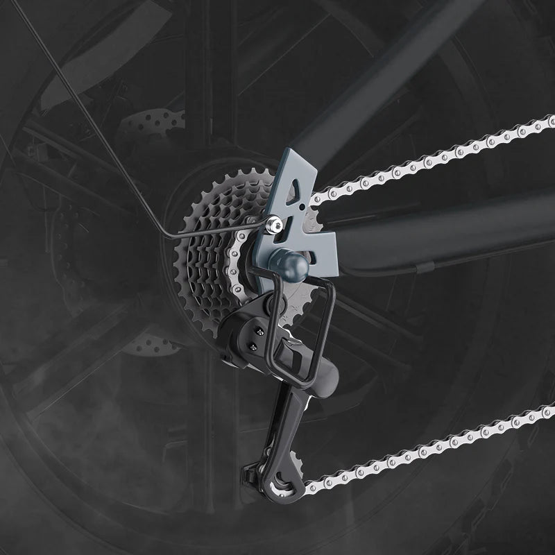Shimano 7-speed gearing: low gears for easy climbs, high for smooth flats, paired with motor for hybrid riding. Responsive shifting boosts uphill torque, eases flat effort—perfect for commutes and casual outdoor rides.